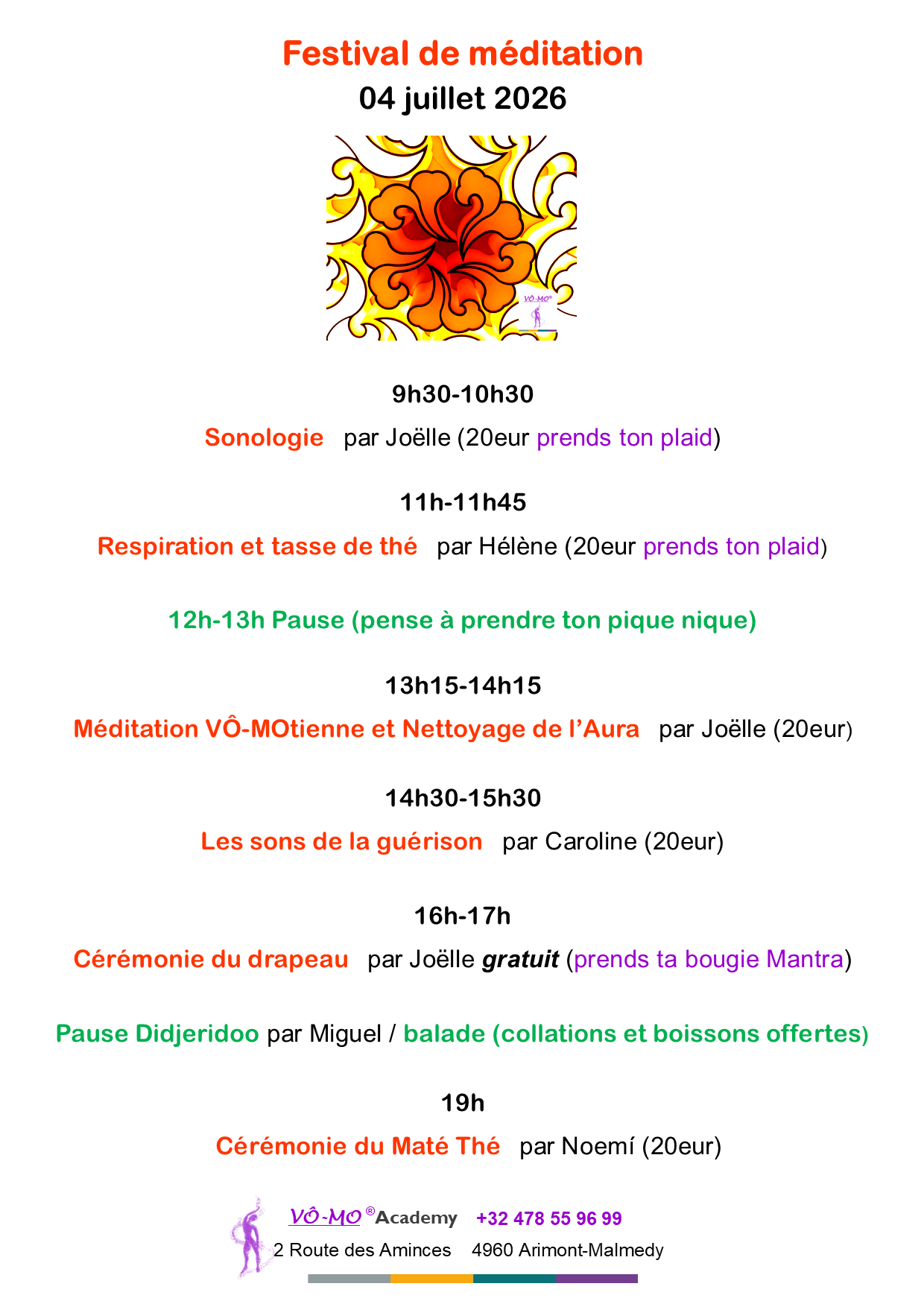C’est avec une immense joie qu’on réitère ce festival de méditation qui se déroule chaque année le 1er samedi de juillet à la VÔ-MO Academy.